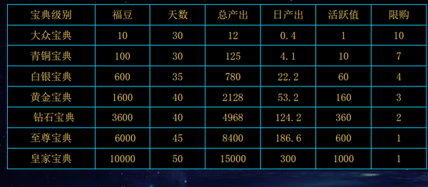 人口需求:直接推送20人,总活跃值1800,赠送1本青铜宝藏(100福豆);