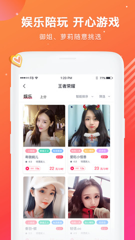 3、并且伙玩app这里的游戏娱乐游戏陪玩很多,可以给你结交大量的游戏玩家,寻找漂亮小姐姐来游戏陪玩开黑玩游戏。