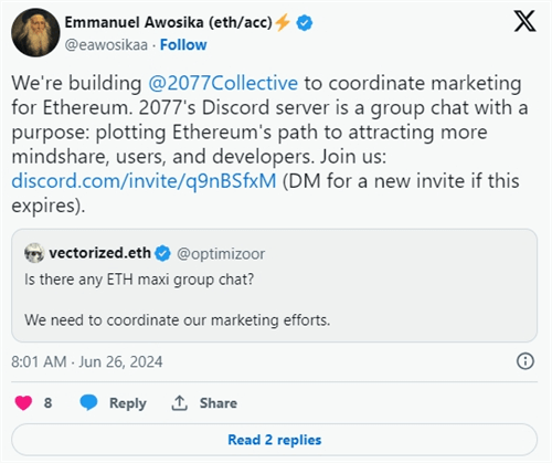 面对以太坊在营销方面的不足,2077 Collective的研究员Emmanuel Awosika直言不讳地指出,尽管以太坊区块链以强大的创新能力和基础设施建设而著称,但其营销力度却相对薄弱。他强调,是时候向外界展示以太坊的真正实力了,而这也是2077 Collective所肩负的重要使命之一。