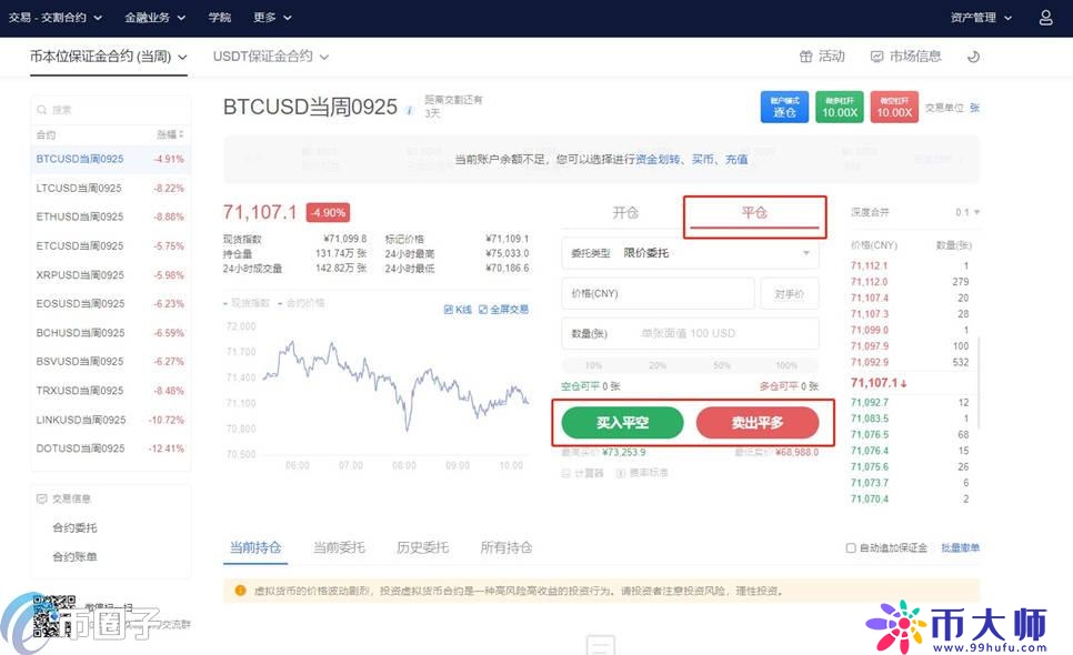 开仓可以选择买入开多或卖出开空,相应的平仓可以选择买入平空或卖出平多。输入理想的价格和数量开多或者开空,但是价格不能超过平台的最高买价或最低卖价。