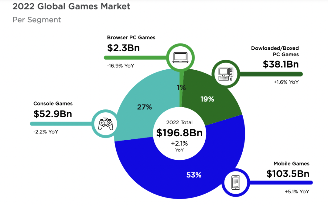 从营收规模来看,云游戏在未来有可能取代整个主机游戏市场,后者有~530亿美元的规模,占整个游戏市场的~27%。对比之下,云游戏到2022年底预计营收23.8亿美元,还有数十倍增长空间[2]。