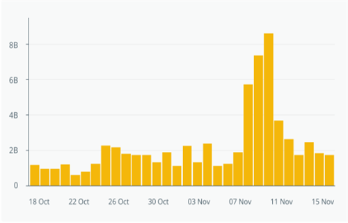 用户从加密货币交易所提取资金,并转向非托管选项来交易资金。Uniswap是生态系统中最大的去中心化交易所(DEX)之一,在11月11日,即FTX申请破产的那一天,交易量大幅飙升。