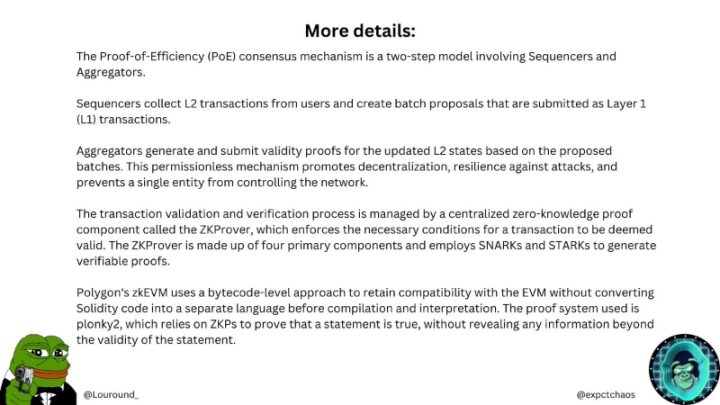 除了采用 Bytecode-level 的 EVM 兼容性方法外,Polygon zkEVM 在其竞争对手中脱颖而出,因为它实现了一种称为 Proof Of Efficiency(POE)的新型共识机制,这种机制可以提高去中心化程度并增加网络安全性。