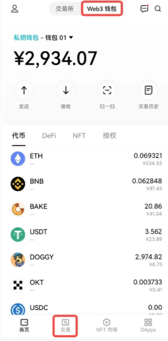 通过Web3钱包,您可以参与各公链的DAPP,此处以OKC上的DeFi项目为例。